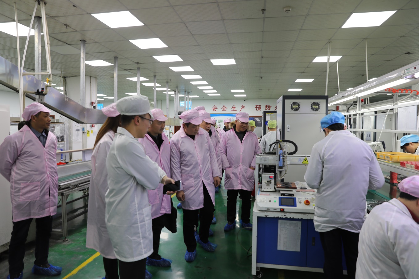 会后,全体人员跟随企业相关负责人一起参观企业生产产线,车间主管详细介绍了产品制造的工艺流程,并看望在企业实习的学生。 张朝气主任鼓励同学们努力学习、精进工作 、通过此次实习收获知识、获得技能、成人成才,也为企业做出贡献。他还叮嘱同学们要时刻牢记安全第一,保证自己和他人的人身安全。