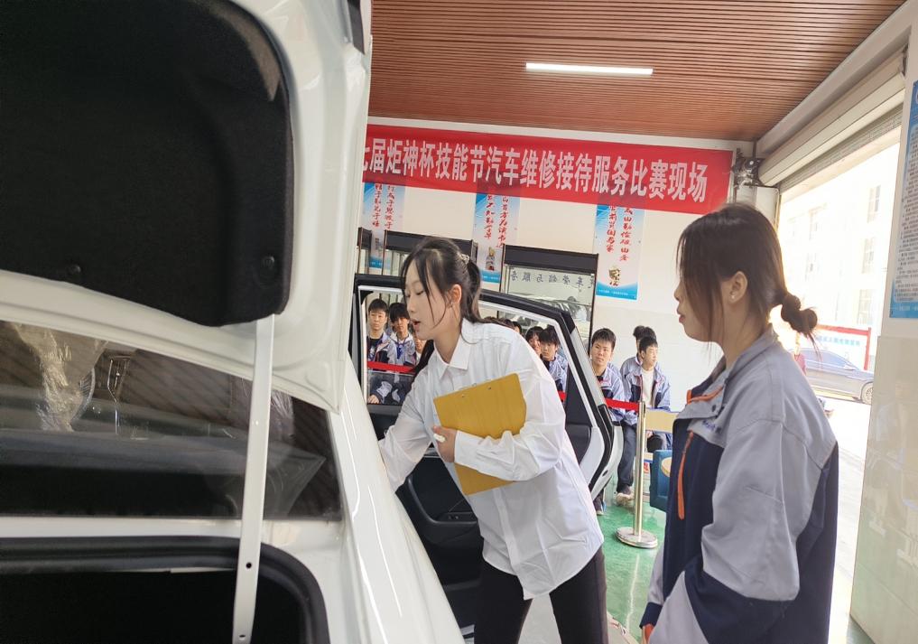 汽车维修业务接待赛项决赛在汽车营销与服务工学一体化学习工作站进行。本次决赛项目分“礼迎客户、环车检查、费用评估、修理监控、质检交车、跟踪回访”六个流程。选手们通过角色扮演、情景模拟等方式,生动地展示了他们如何与客户进行有效沟通,如何在有限的时间内准确理解客户的需求,并提供合适的解决方案。他们的专业表现赢得了评委和观众的阵阵掌声。