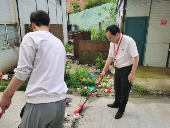 活动前,党支部副书记唐志雄对清理任务提出了要求和简单的分工,然后,大家按照任务要求和分工分头行动起来,有的清除杂草,有的清除垃圾,清除建筑砖瓦碎片,由于天气炎热,从垃圾堆中散发出一阵阵难闻的臭味,大家克服困难,认真完成工作,功夫不负有心人,经过1个小时的时间清除工作,虽然党员们和学生都是大汗淋漓,但是垃圾、杂草被清除的一干二净,美化了环境,大家都很开心。
