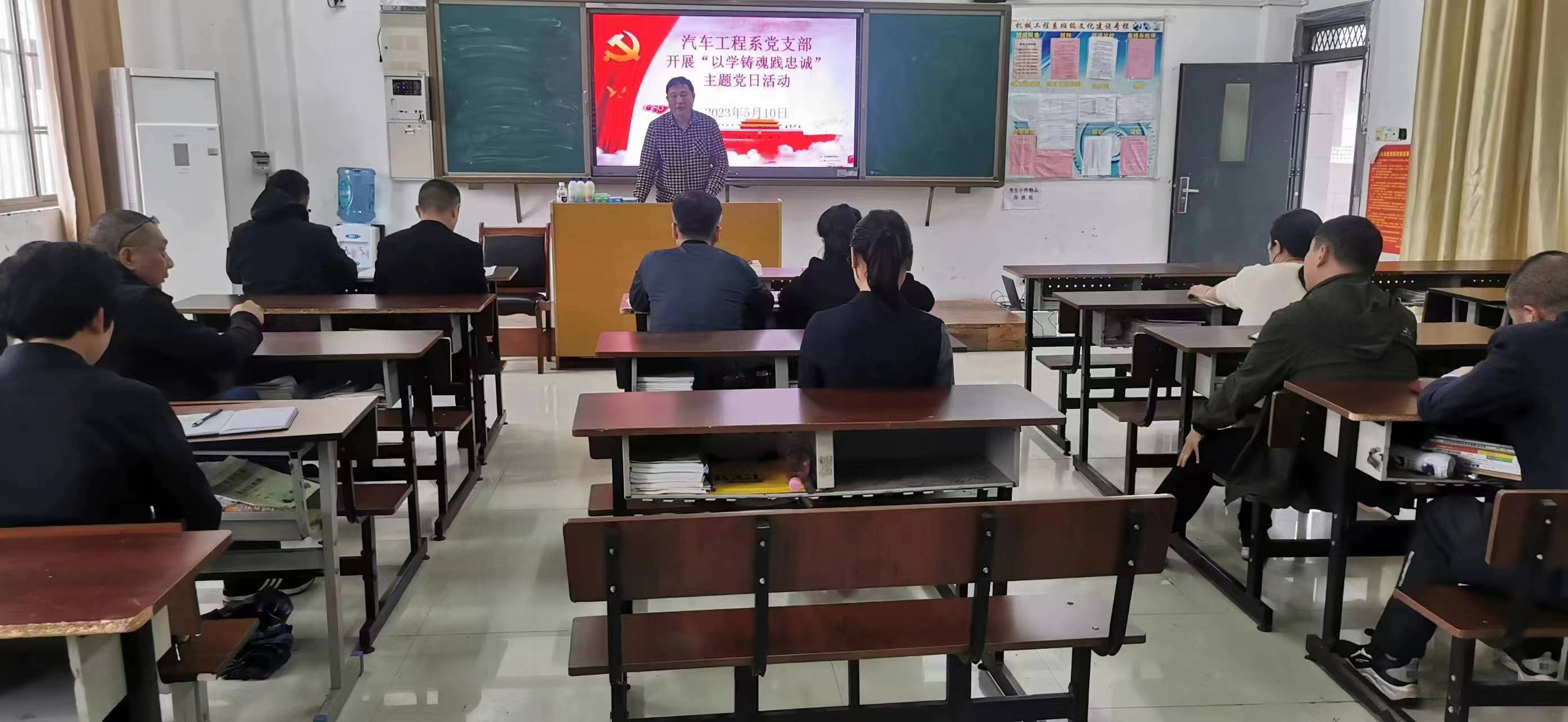 (通讯员 张新永)5月10日下午,汽车工程系党支部全体党员在606教室开展以“学铸魂践忠诚”主题党日活动,主题党日活动由党支部书记唐玉雄主持。