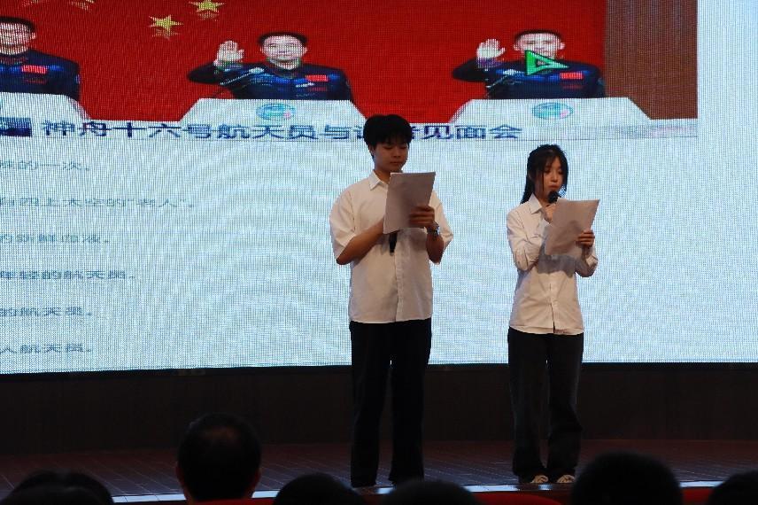 辅导课还邀请学生代表朗诵了长篇叙事诗:《请告诉孩子 读书才是最容易的路》。诗中讲述了神舟十六号航天员桂海潮出生寒门、坚韧不拔坚持学习,终于破茧而出,一飞冲天的的励志故事。以此激励同学们要树立爱党爱国的远大理想,崇尚技能、努力奋发、踔厉前行,努力成长为一名桂海潮似的高技能人才。