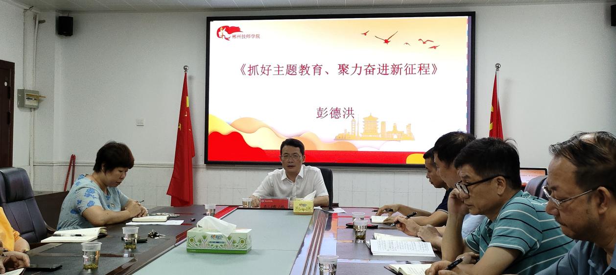 院党委委员、副院长彭德洪同志以《抓好主题教育聚力奋进新征程》为题上主题教育党课。彭德洪同志结合工作实际,从深刻理解开展主题教育的重大意义;全面学习贯彻习近平新时代中国特色社会主义思想;坚持将思想转化为指导实践的强大力量;抓好问题检视整改等四个方面进行了全面阐述。并就如何抓好主题教育,用习近平新时代中国特色社会主义思想凝心铸魂,为奋进新征程凝聚磅礴伟力等方面提出了具体要求。彭德洪同志指出:要把握好习近平新时代中国特色社会主义思想的世界观、方法论,立场观点方法;要坚持学思用贯通、知信行统一,把习近平新时代中国特色社会主义思想转化为坚定理想、锤炼党性、推动工作的强大力量;要把理论学习、调查研究、推动发展、检视整改等贯通起来,边学习、边对照、边检视、边整改,把问题整改贯穿主题教育始终;要结合工作实际,大兴调查研究,找准问题,强化整改,凝心聚力促发展,驰而不息抓落实,为创建全国优质技工院校立足岗位做贡献。