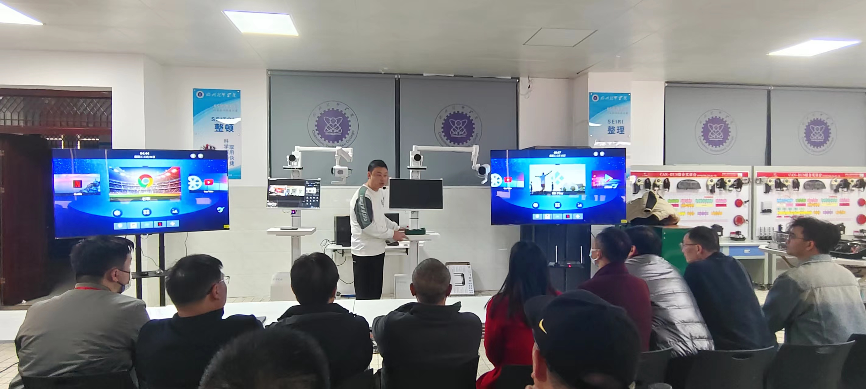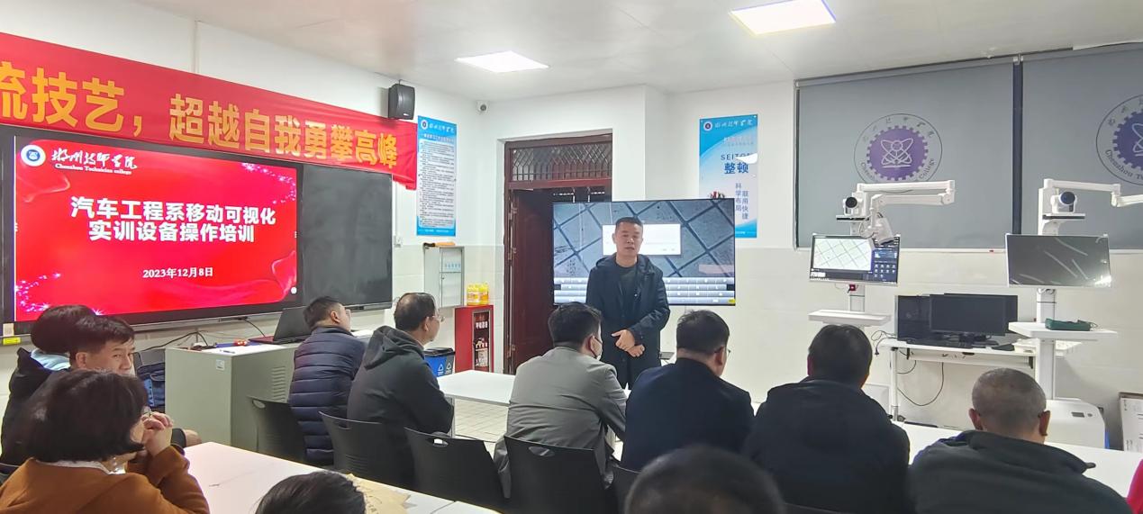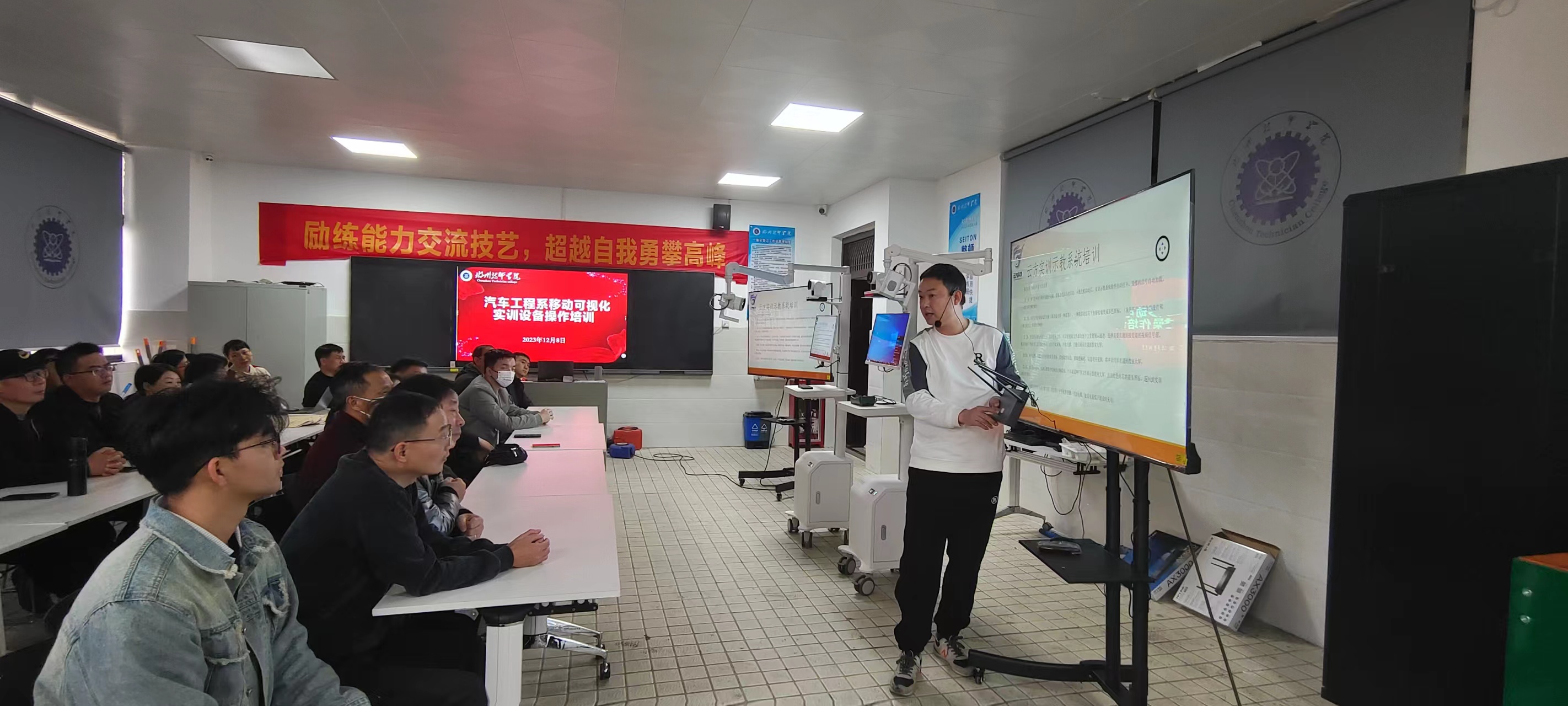 (通讯员 殷天畅)2023年12月8日下午,汽车工程系利用课后时间,组织全体教职工进行新采购的移动可视化实训教学设备操作培训。 培训由设备供货商长沙厚儒信息技术服务有限公司提供技术支持。