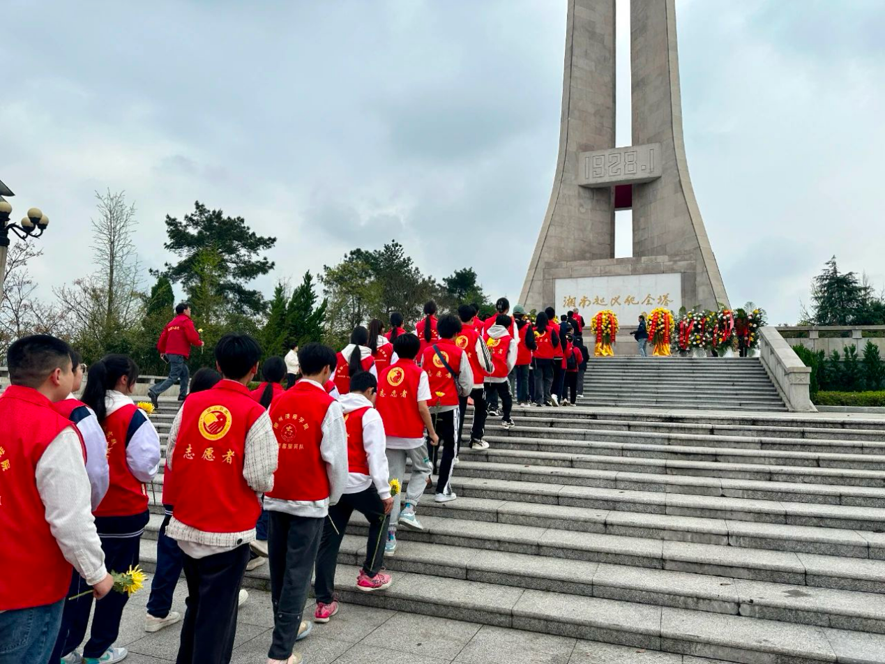 活动中,举行了升国旗、国旗下讲话、为革命烈士献花等仪式。随后,同学们走进湘南起义纪念馆参观。