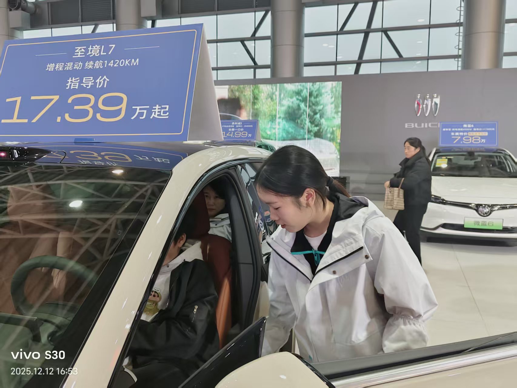 “欢迎了解这款新能源车的智能驾驶系统!”现到别克已经工作一年的汽车技术服务与营销20501学姐刘薇,正自信地向我们的学妹李思怡介绍一辆别克最新款混动汽车。她的讲解不仅涵盖了车辆的基本参数,还结合当前市场趋势分析了该车型的竞争优势。不远处,我们的学生王郁倩正协助潜在客户进行试乘体验安排,流程专业而周到。学生李思怡表示:“这次车展为我们学生提供了难得的实战平台。在这里,我们不仅能够接触到最新的汽车产品和行业动态,还能直接与消费者、销售专家互动,这是课堂教学无法替代的宝贵经验。”